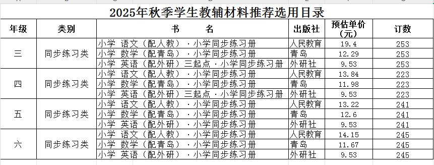 - ● 青岛新世纪学校2025年秋季学期教辅材料征订情况公示